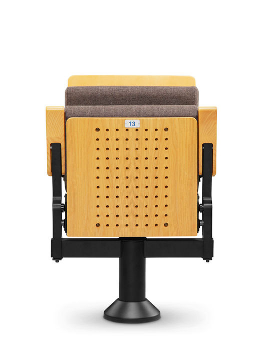 Molio Wood er en stilren og moderne stol, hvor både sete og armlene kan vippes opp og ned. Hullene i bunnen av setet forhinder dårlig akustikk. Molio Wood har eksklusive detaljer i tre, som gir et varmere uttrykk. Molio Wood kan produseres i forskjellige farger for å tilpasse designet til bygget.